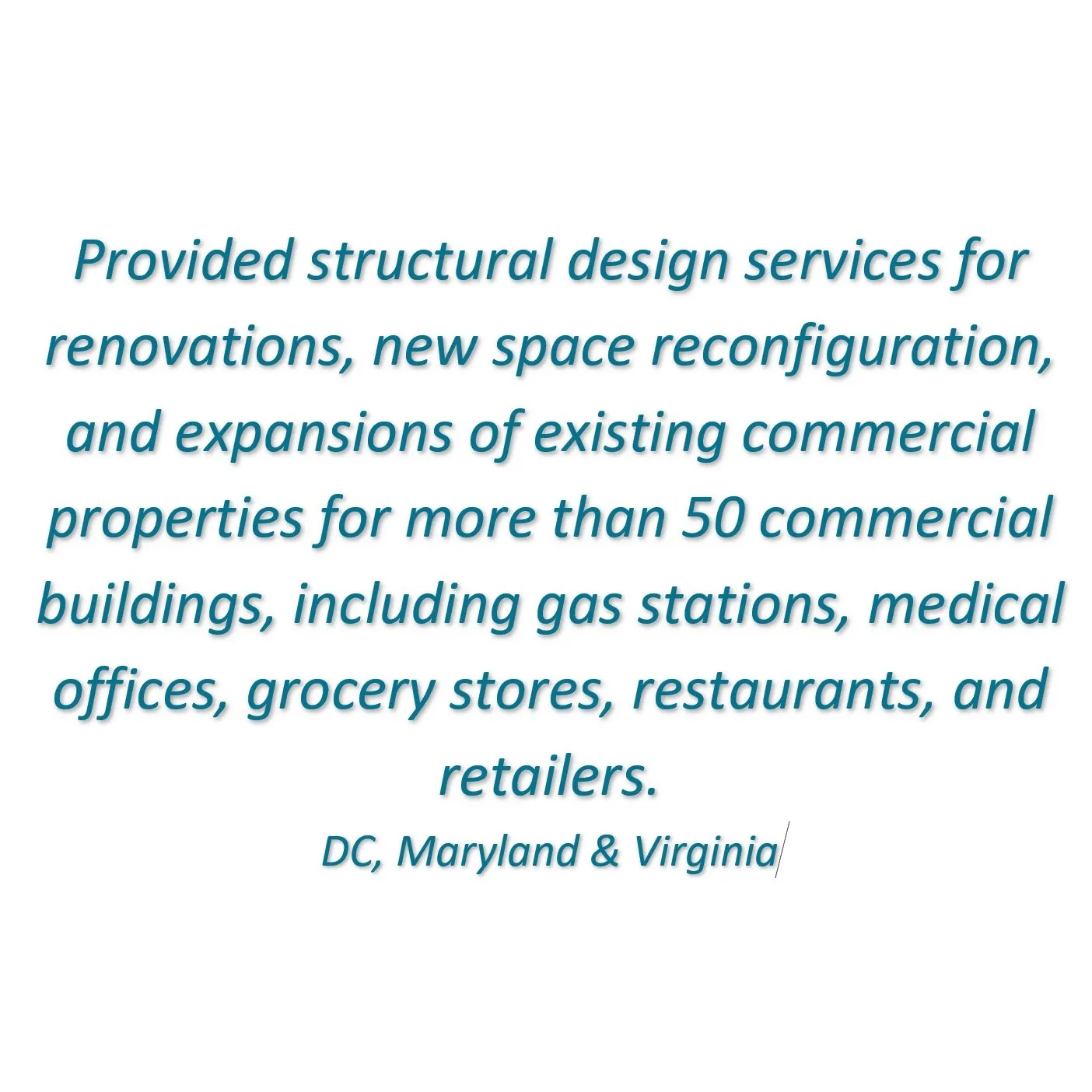 YFG Structural Engineering partners with architects, developers, and property owners to deliver efficient, customized solutions for complex structural challenges, shaping safe, resilient, and enduring spaces. From small-scale renovations to large commercial developments, we bring precision, creativity, and reliability to every project, making a lasting impact across the DMV area and beyond.